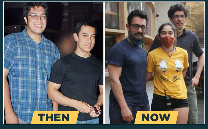 Aamir Khan’s elder son, Junaid has been prepping for his Bollywood debut. He is doing a film titled, Maharaja which is being helmed by Sidharth P Malhotra. It’s clear that he has undergone a massive transformation. He made a splash in the town today with his father and sister, Ira Khan. His pictures are going viral on the internet as netizens are shocked to see his commendable transformation. Alongside losing a few kilos literally, he was seen sporting a different look(probably it’s his look from the upcoming movie). His then and now pictures are sure to give you major fitness goals.