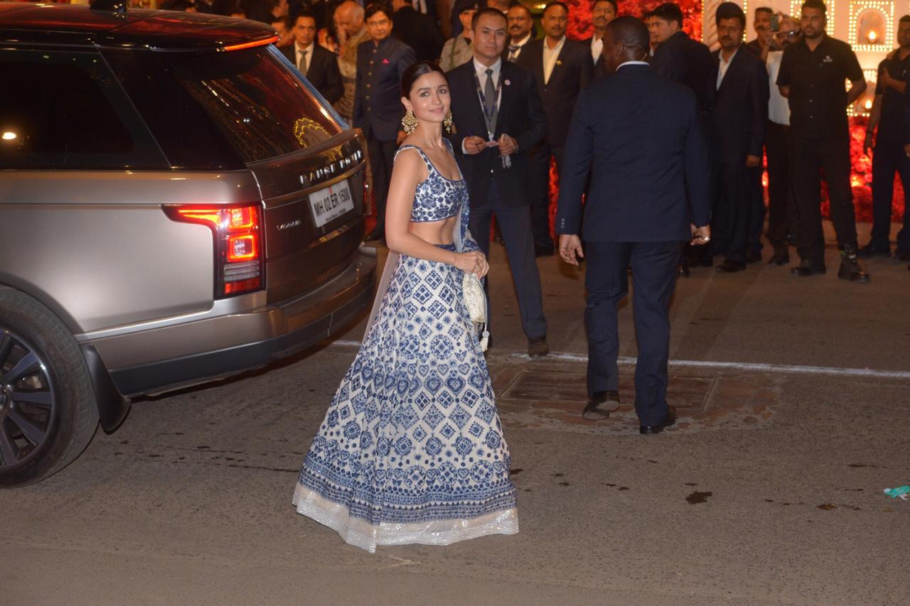 Alia Bhatt, who could not attend the pre-wedding bash of Isha Ambani and Anand Piramal, which was held in Rajasthan’s Udaipur has made her presence felt in the wedding ceremony at Antilla, Mumbai on Wednesday.