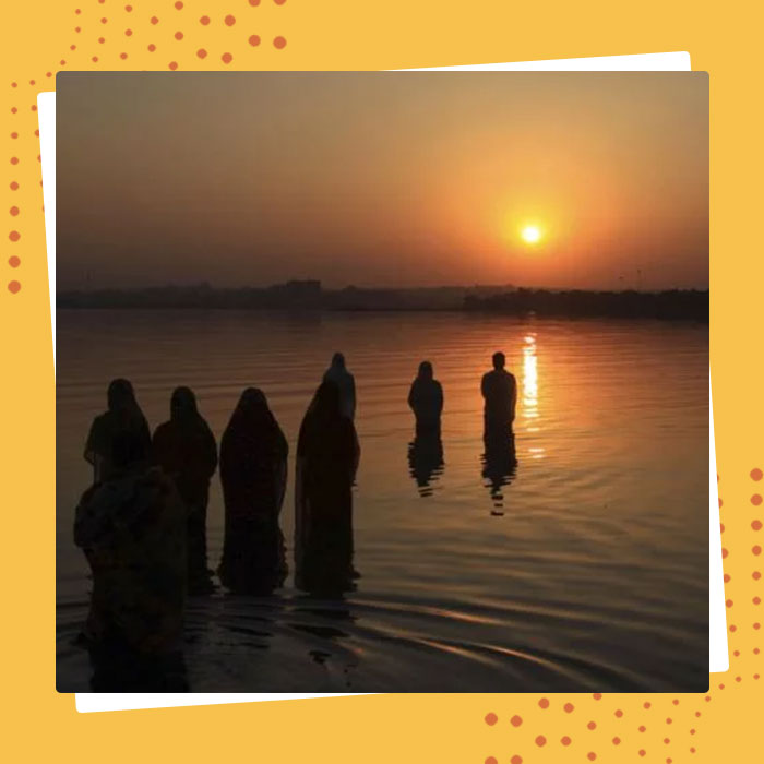 An ancient Hindu Vedic festival that is dedicated to the Sun God, the source of all powers and Chhathi Maiya (another name for Goddess Usha from the Vedic period). The god of light, energy and life force is worshipped in order to promote well being, development and the prosperity of human beings. Through this festival, people aim towards thanking the Sun God for a period of four days. The devotees who observe the fast during this festival are called Vrati.