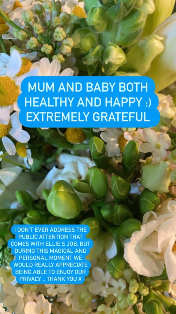 “I don’t ever address the public attention that comes with Ellie’s job. But during this magical and personal moment, we would really appreciate being able to enjoy our privacy… Thank you x.”