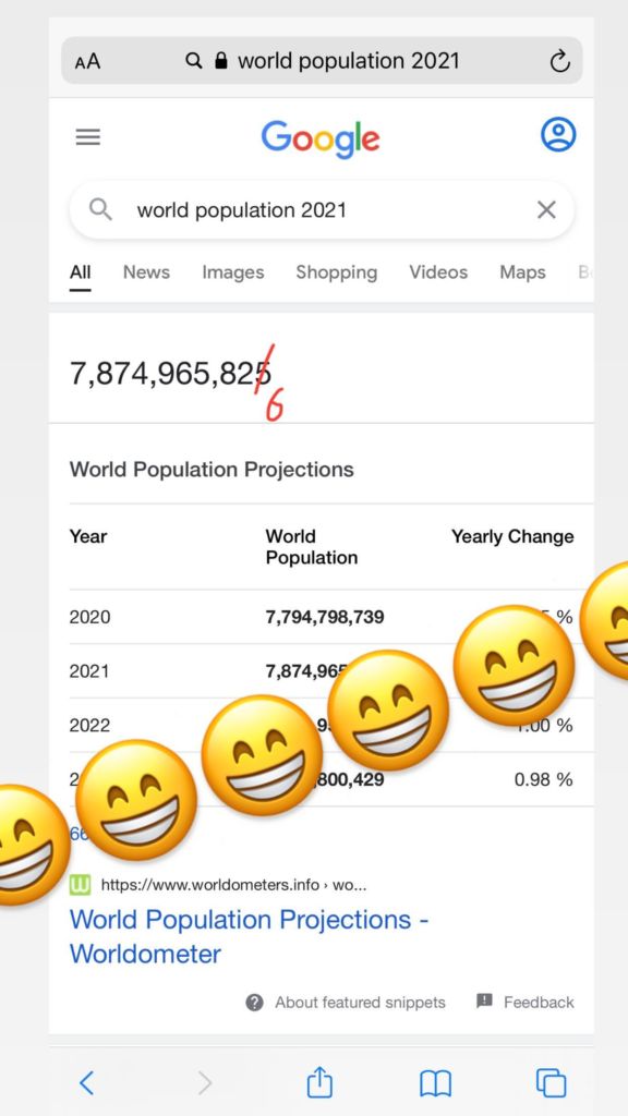 He also shared a screengrab of a Google search about the “world population 2021.” He crossed out the number and including the addition of his own.