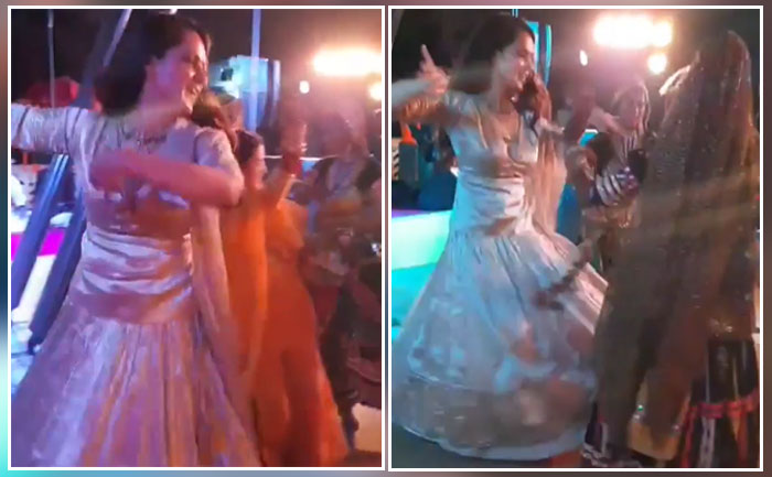 Bollywood beauty, Kangana Ranaut is currently busy celebrating the pre-wedding festivities at his brother Aksht’s traditional wedding. The actress was seen setting fire on the dance floor as she grooves to Kesariya Balam song with her sister, Rangoli Chandel. The video goes viral on the internet and the sisters surely serve major family goals.