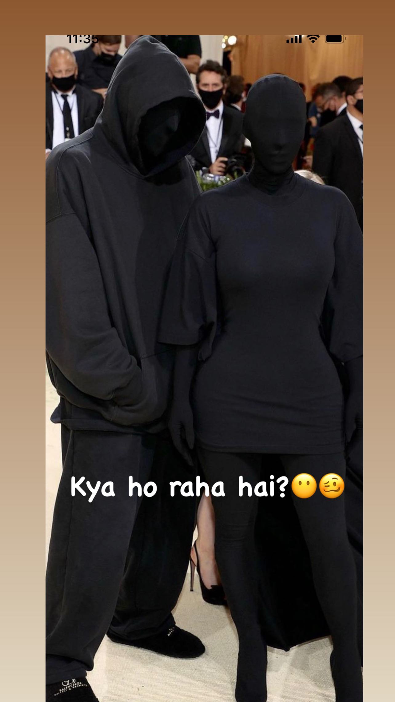 The ‘Good Newwz’ actress shared the image of Kim’s Met look on her Instagram story and wrote: “Kya ho raha hai?” with a confused emoji. The photo also features Balenciaga designer Demna Gvasalia and KKW Beauty founder’s side alongside Kim Kardashian.