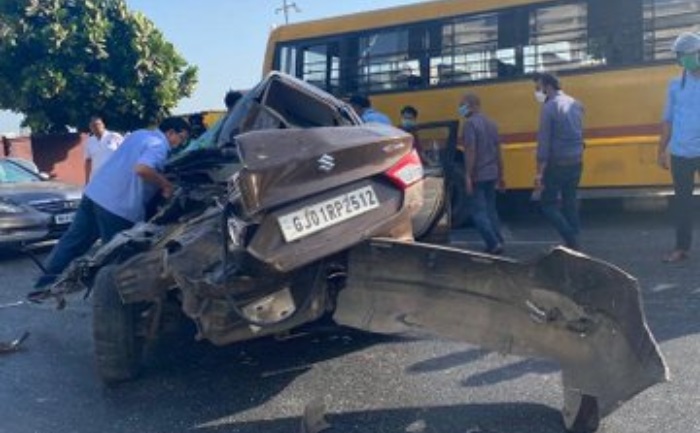 As reported by a source to The Hindu, The fatal accident occurred at around 4 p.m. at the BD Somani Chowk stretch of the Marine Drive on Tuesday. The duo, identified as Shauryasingh Jain (19) and Aryaman Nagpal (18), were in a Maruti CEAT on Marine Drive. Mr. Jain was driving, while Mr. Nagpal was in the front passenger seat. The speeding car crashed into the bus.