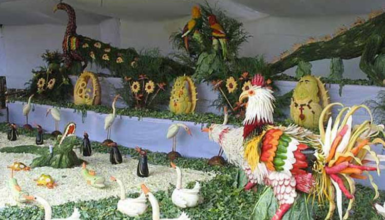 The Vegetable Show is held an hour out of Ooty in the town of Kotagiri. It is held at the Nehru Park, since four years. More than 16,000 visitors pay a visit to the exhibition. Like the fruits and flowers, there are buildings, village scenes, and carved designs made out of fresh vegetables like farm animals and huts.