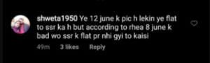 Rhea had tagged Sushant’s manager Shruti Modi in the post, however, she didn’t tag the late actor. Netizens took to the comments section and highlighted that this could mean that she was back on 12th after Sushant’s sister, Meetu left. The CCTV footage from 8-14 should be checked to confirm this, some suggested.