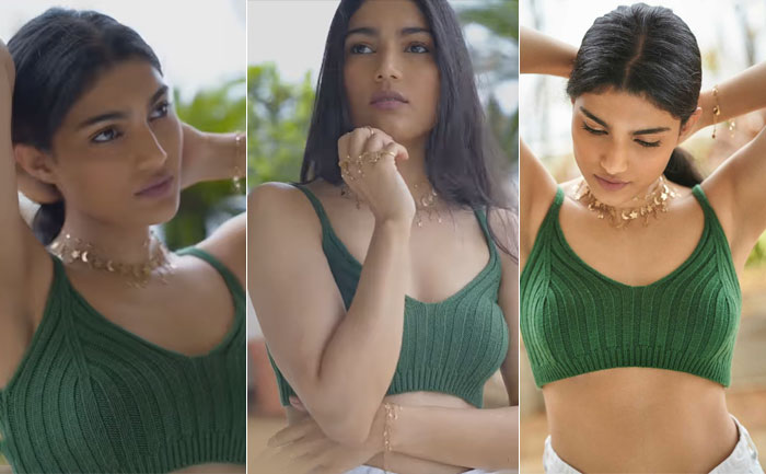In the video ad, shared by the jewellery brand, Alizeh Agnihotri is seen wearing a bottle green bralette and white pants. She is also seen flaunting her bracelet, hand thong, necklace and rings, as she struck different poses.