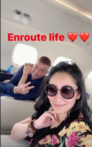 Reportedly, the couple took a chartered flight to Dubai, Maanayata took to her Instagram stories and shared a selfie with the actor, and captioned it as: “Enroute life.”