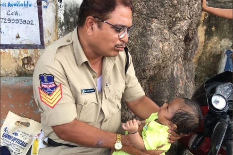 Telangana: Policeman babysits while mother writes exam, gets praised