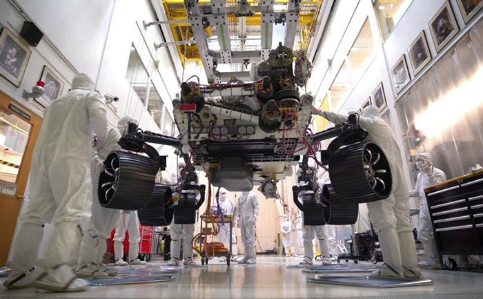NASA’s Mars 2020 rover stands on its own wheels for the first time