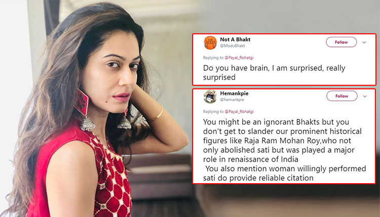 Payal Rohatgi tweeted on Sati Pratha and called Raja Ram Mohan Roy, a traitor. Twitterati…