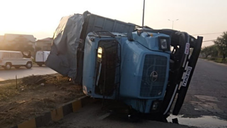 CRPF vehicle turned turtle after the driver lost control in Srinagar