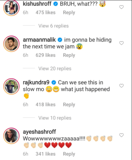 Raj Kundra commented, “Can we see this in slow mo…what just happened.” Singer Shaan dropped several surprise face emojis and asked, “is this real… or a video game?” Singer Himesh Reshammiya called it “fabulous”.