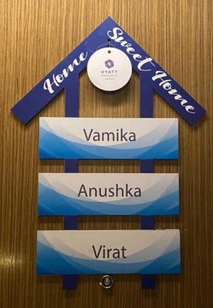 We have got our hands on Virat’s nameplate that is outside his room and it features his wife Anushka and their two-month-old daughter, Vamika. Well, isn’t that nice?